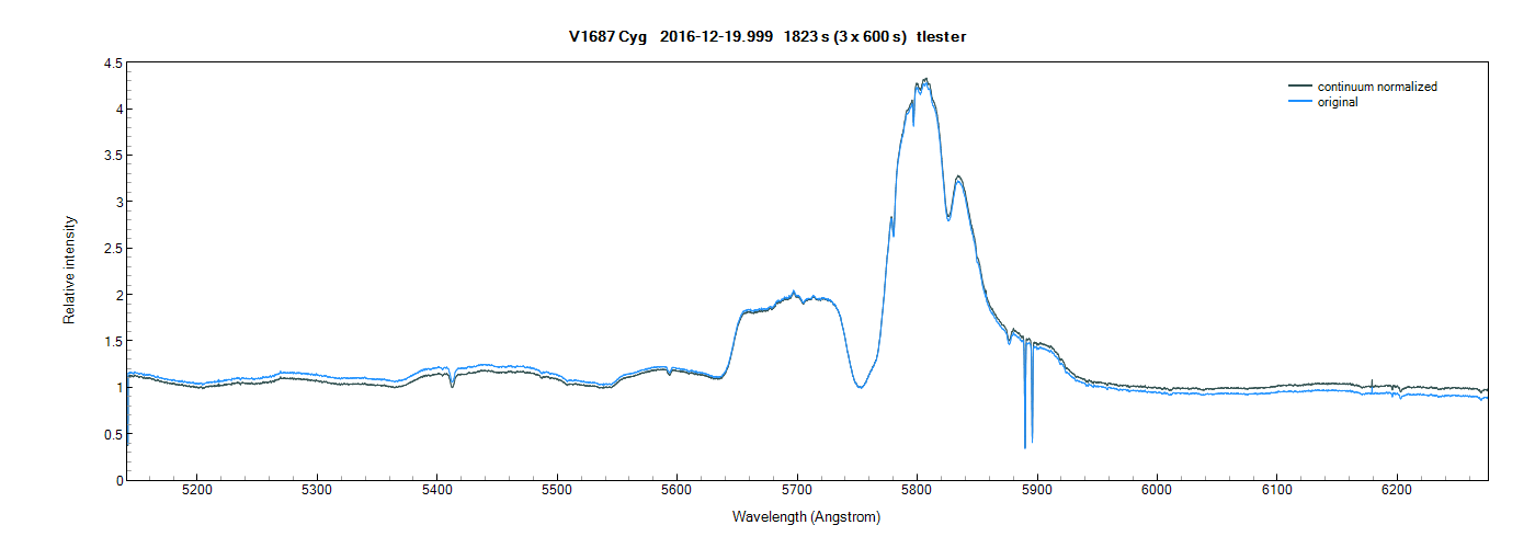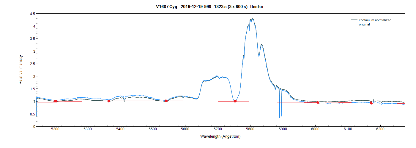 Hi all! Joan, thank you for raising the issue here. The reference point at 575 nm was indeed a bit strange (too high). The new feature of PlotSpectra about continuum normalization is excellent. Anyway I also think that this delicate task should be done by astronomers with our spectra normally reduced.