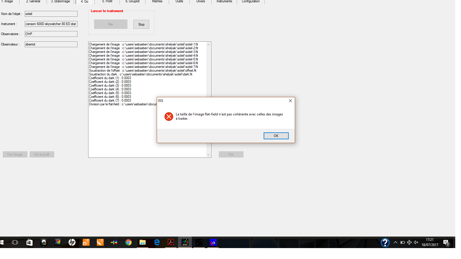 Maintenant, il m'indique qu'il y a un pb avec les flats mais pour les flats, je me suis bien mis en binning 2x2.