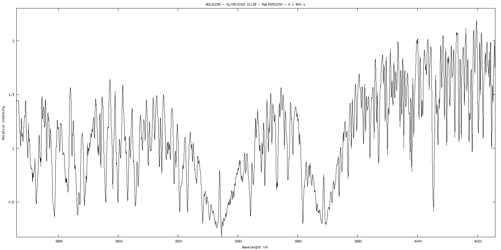 Last night, a first spectrum for me for this kind of target : HD 131156 (Ksi Boo) taken with my eShel spectrograph, but I don't refocus the spectrograph in the blue, so the resolution for #56 and #57 orders go down to R=6000.