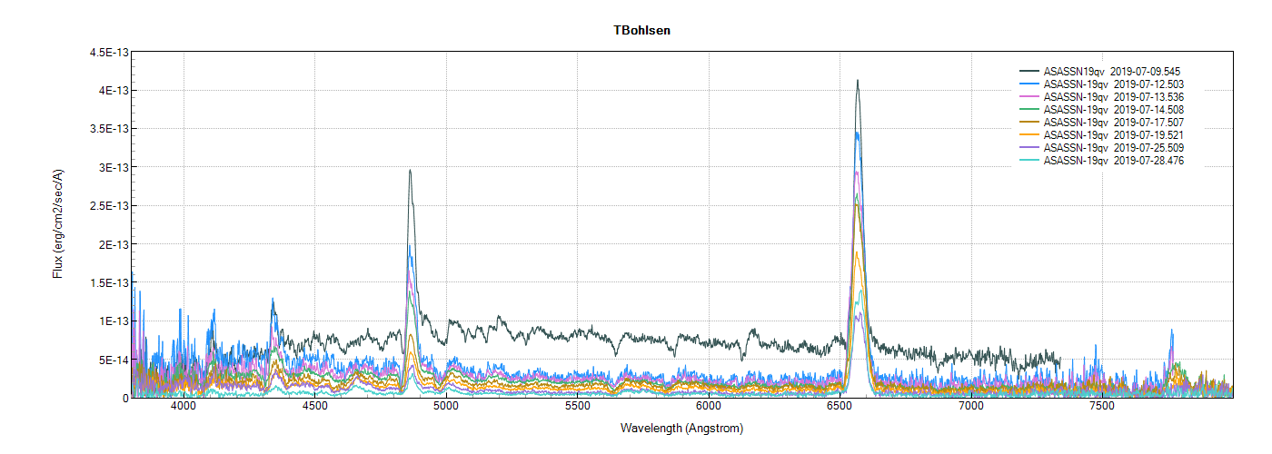 On 26 jul, the Halpha peak intensity is 3x what it was previously! I double checked that it wasn't a star accidentally sitting in the field of the slitless spectra, but it really is the star.