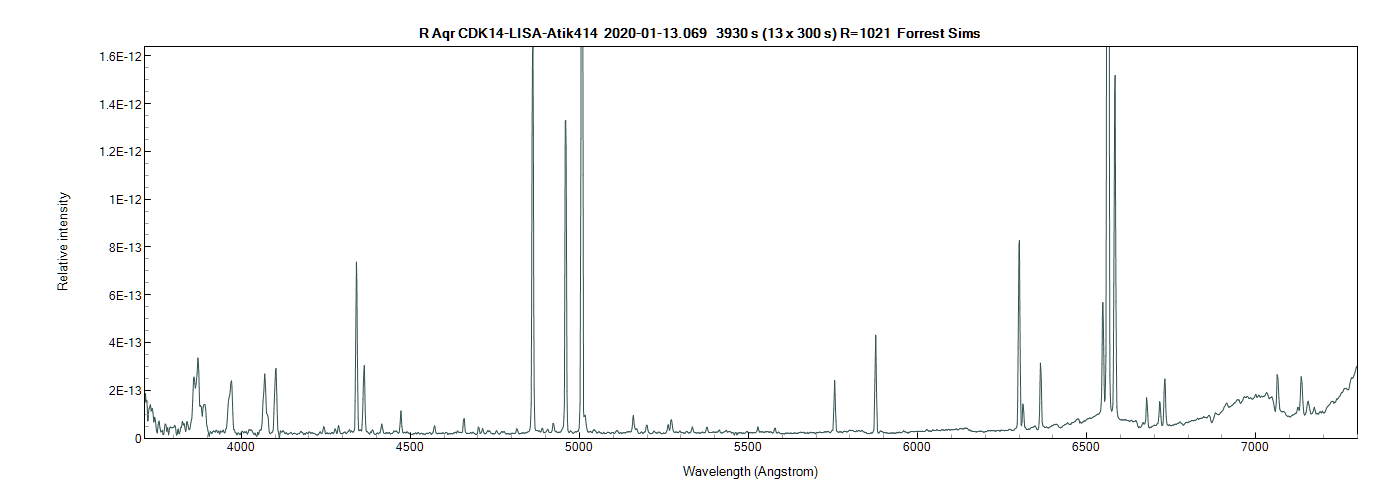 I was able to shot a 49min (7x420sec) spectrum of R Aqr on the 13Jan20. The Object was quite low and seeing was just average; see: