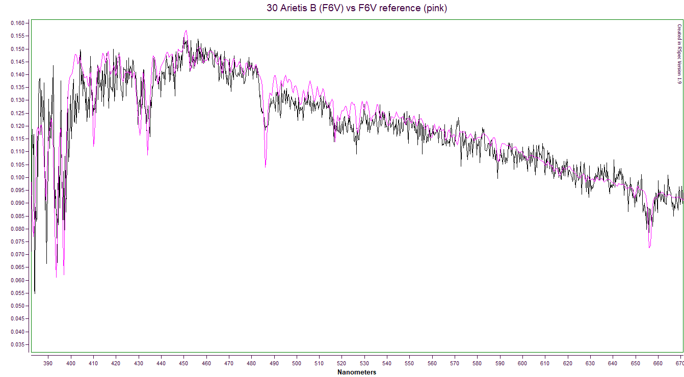 The common reference is, in fact, the dispersion, which doesn’t change. I begin by building a polynomial using the Balmer lines from an A-type star. Then I add in the Ca II K and H lines and Na I D line from an F- type star At this point I have a polynomial function for the dispersion, which is the same for all stars. I calibrate an unknown star using one point: H-beta for stars O-A, Ca I K for F-type stars and Na I D for K-type and G-type. I don’t need to know the spectral type of the unknown star, I have never had a problem with trial and error. All these spectra were taken with a simple easy to use system: Borg 55mm on a camera tracker. No guiding. 5-10s exposures acquired with ASI290MM-Cool and stacked.