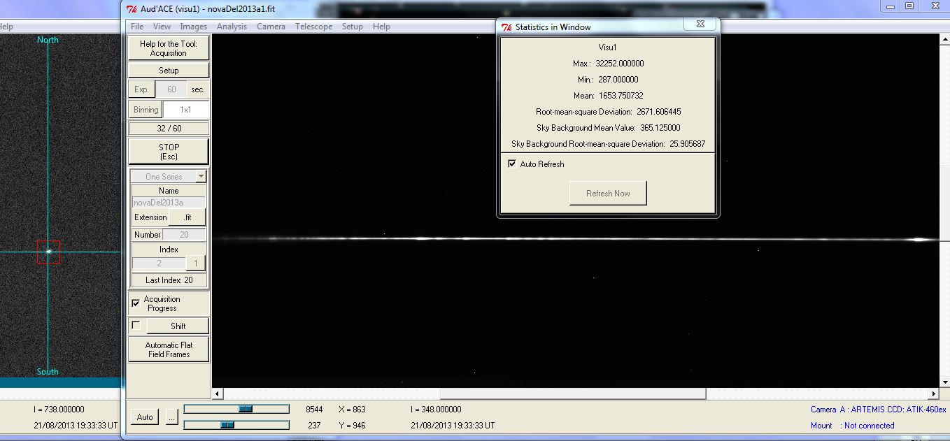Once again here for the nova but with a very strong wind. The star twist in the guiding windows. The S/N is really bad this evening.