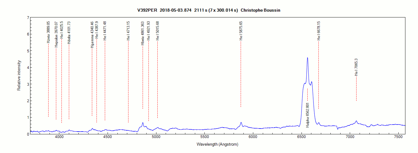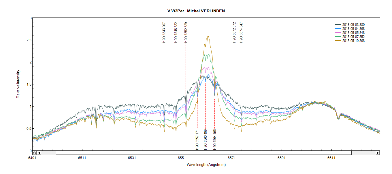 Evolution du spectre de V392 PER du 3 au 10 Mai 2018