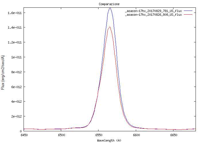 Bonjour, le profil de la nuit dernière et une comparaison dans la région H-alpha avec le jour 01-09-2017. L'hydrogène monte encore. Umberto
