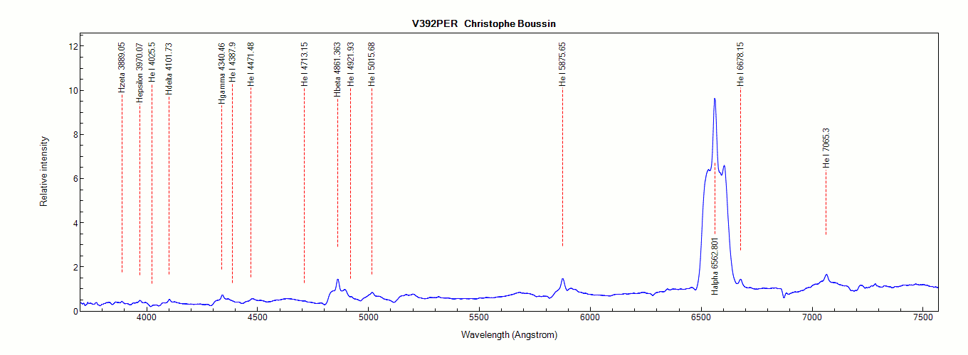 Sur le spectre du 10 Mai, le profil de la raie HeI à 7065A est clairement semblable à celui de la raie Halpha :