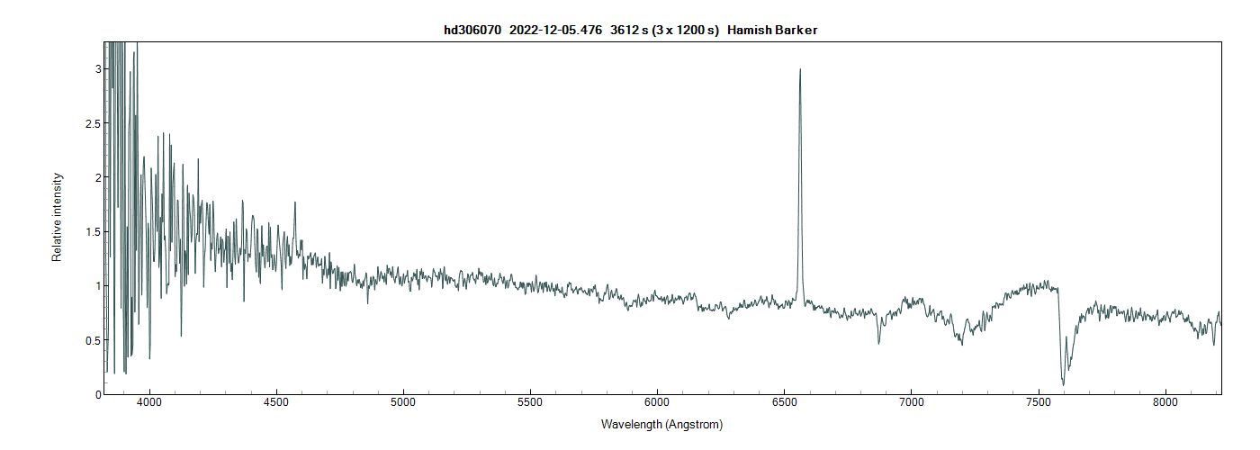 HD 306070 is slowly becoming more visible. herewith guider image and spectrum from last night (3x1200s).