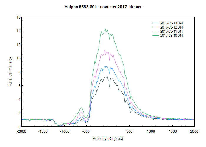 Here is nova sct 2017 for Sept 13th. Halpha and Hbeta for the last 4 nights. Tim