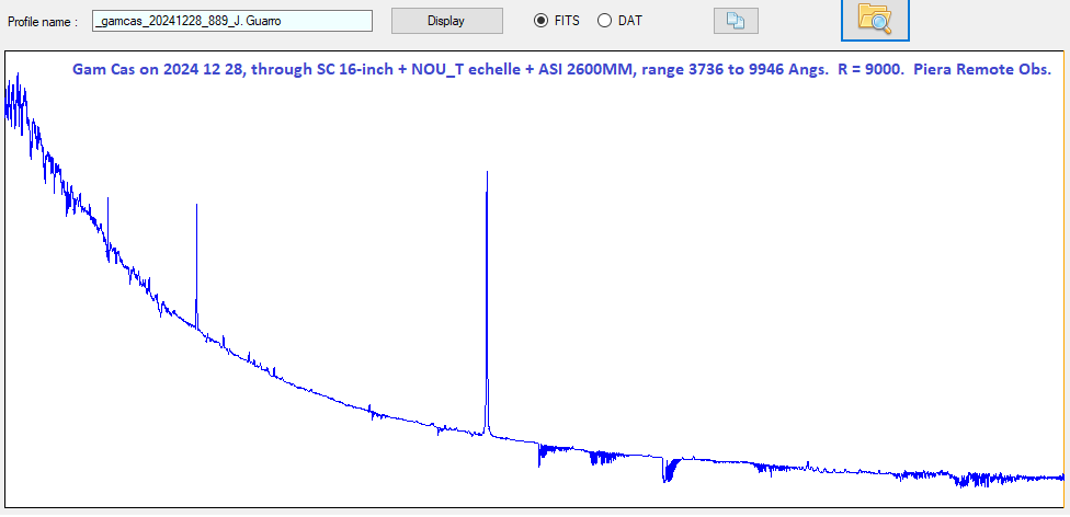 So I mounted the ASI294MM in the Piera NOU_T echelle, I used it with binning 1x1, - 2.315 x 2.315 microns -, BIAS = 10, GAIN = 200. In the reduction images by the ISIS CMOS application, I utilized a camera master BIAS, not a synthetic one, Median Filter 3x3 and an ending 3x3 binning.