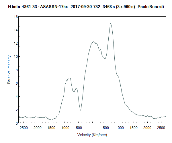 Here is my last spectra of Asassn-17hx from my high altitude site:
