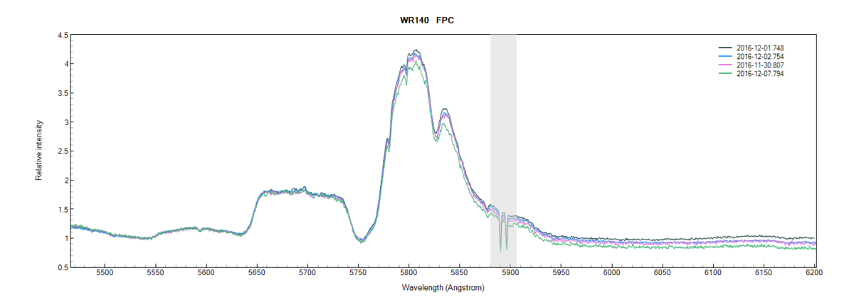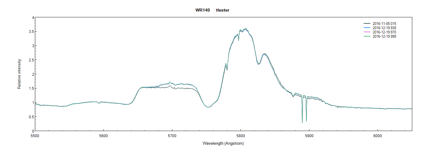 Some comparisons between 4 spectra taken in december: 3 before the periastron, 1 after (the 25th) with an eshel spectrograph.