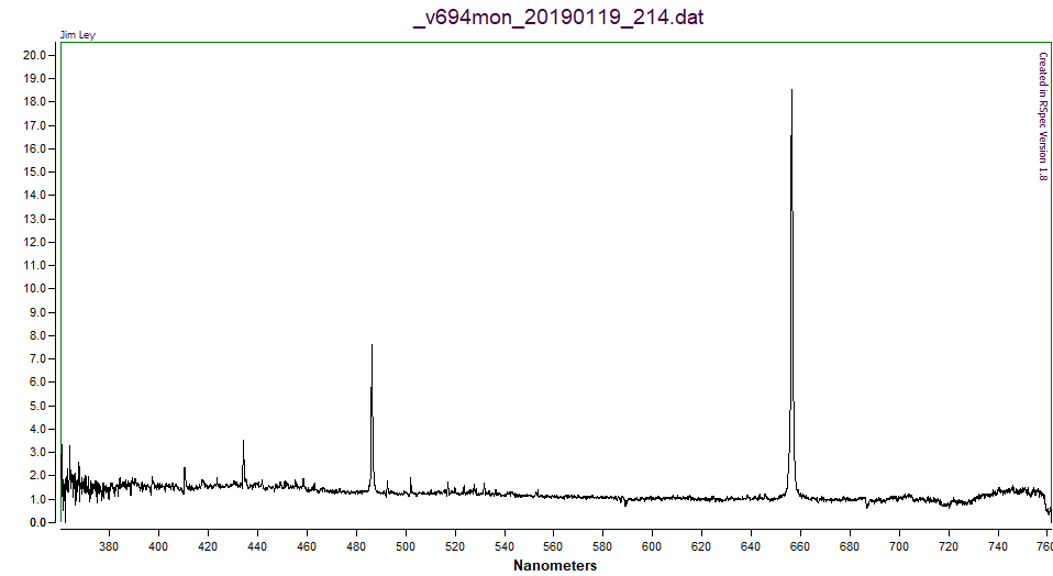 Here is a spectrum that I took last night. This was 10 x 600s. That certainly increased the signal to noise ratio!