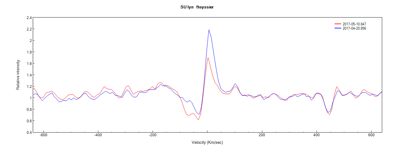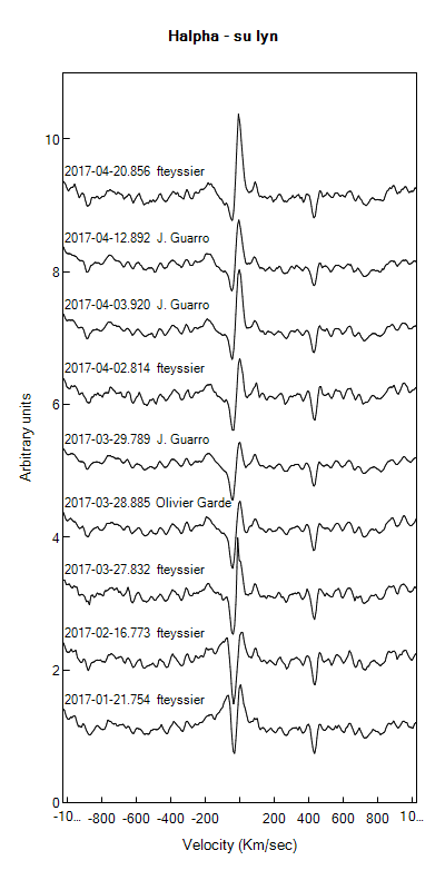 I'll try to get one more high resolution (Grating 1800 l/mm) spectra of the Ha region of SU Lyn before it slips behind my house in the next week or two.