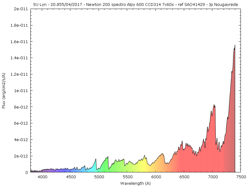 SU Lyn en basse résolution le 20.8/04/2017, flux absolu, pour référence HD 50420 (V 6.15 à 5293A)