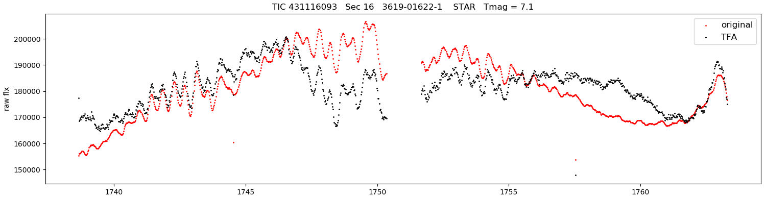 4th: same TESS LC, but with the red curve subtracted (makes it easier to see the higher frequency signals and their changes).