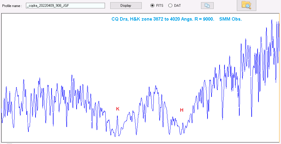 You can see here some CQ Dra graphics that I observed last night, the NOU_T echelle with a NIKON 85mm. F/1.8 objective gives more agility to the observations and its R = 9000 is very useful for analytical measurements with really any difference as the NIKON 135mm. R = 11000 and with the same precision.