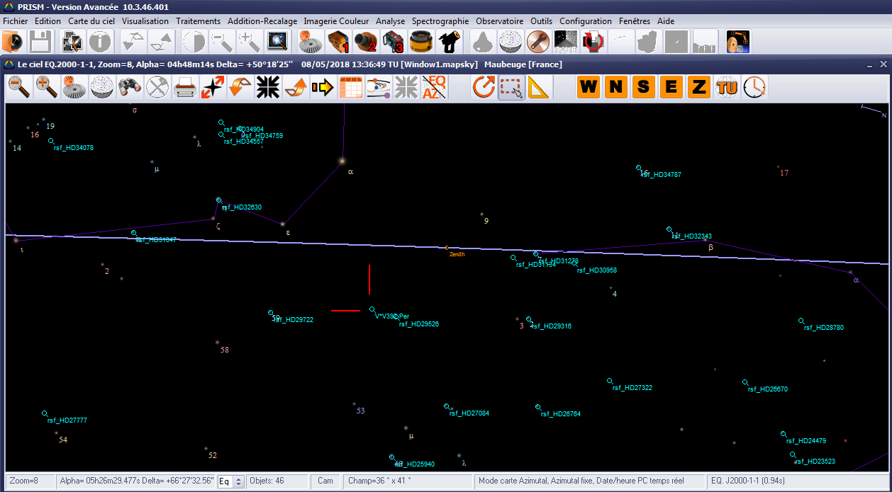 Pour trouver l'étoile de référence A0V hier ce fut bien compliqué aussi, j'ai fait en premier l'étoile K0 non loin, erreur ! J'ai l'impression que pour trouver les objets bas en altitude c'est moins performant avec Carte du ciel et ascom sur eq6. Pourtant je synchronisme avec des objets non loin... Sans doute la mise en station ? La difficulté aussi vient du ciel très lumineux à 22h pour voir Capella et Vénus je suis obligé d'être à 0.5s dans la caméra de guidage et encore c'est très lumineux !!!