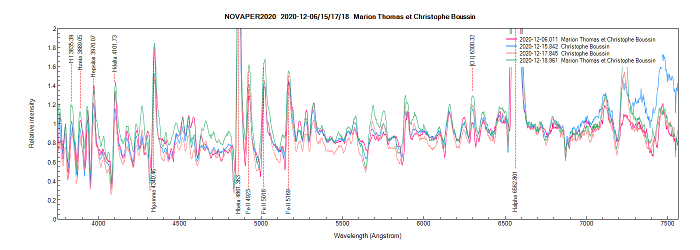 Nova Per 2020 on December 6th, 15th, 17th and 18th, 2020 (identification of some lines from PlotSpectra).