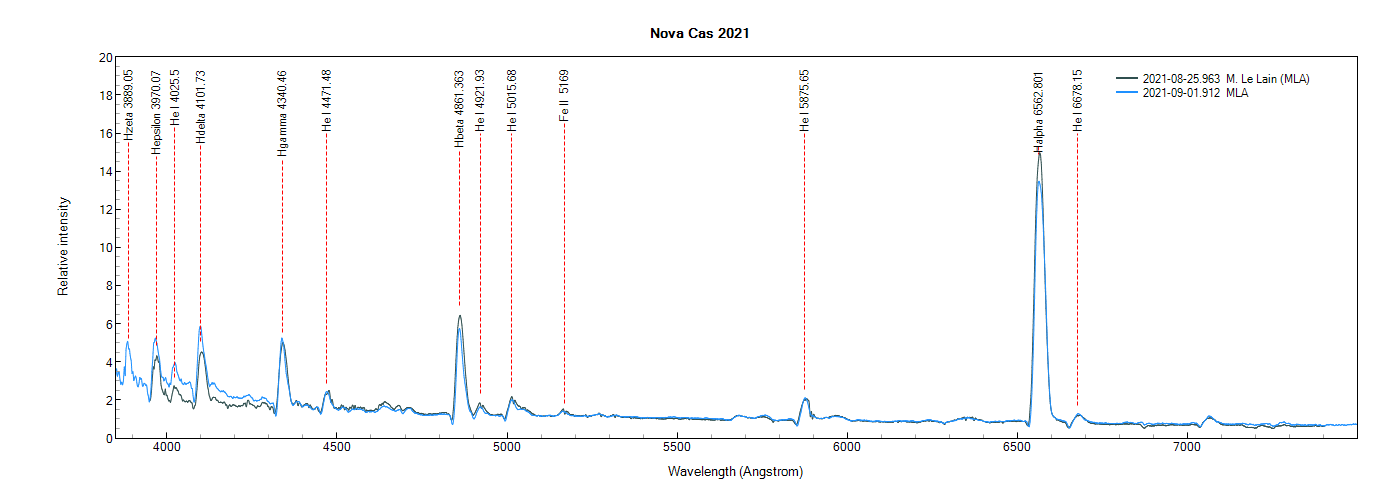 It's also very interesting to see the parallel evolution of the Halpha and HeI 6678 A lines you mention : I look forward to seeing your next echelle spectrum with your remarkable Nou T spectrograph !!