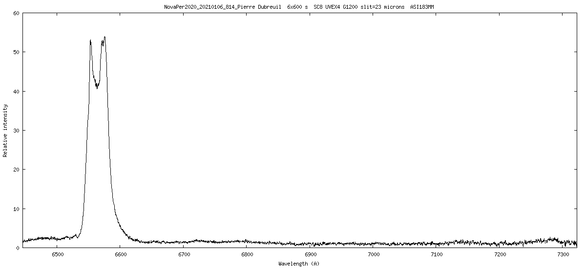 Ci dessous le spectre autour de H-Alpha réalisé avec UVEX(4) G1200 le 6/1/2021