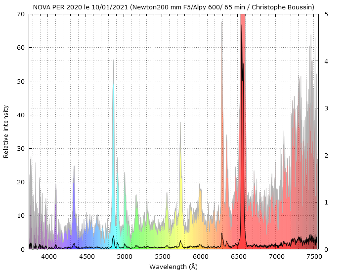 Profitant d'un début de soirée clément, je viens de prendre ce soir 9 spectres de 10 minutes sur la Nova Per 2020. La magnitude doit approcher les 12 maintenant.