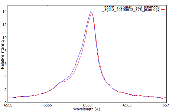 AG Dra for June 3rd compared to my last shot on March 24th (corrected for heliocentric radial velocity).