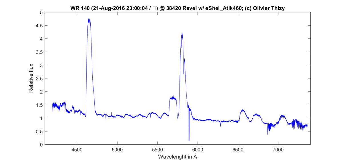 I am seriously considering to enrol in this project, it seems exciting and a resolution of 5000 it's possible to my DADOS spectrograph and a grating of 1200 l/mm. Meanwhile, I will take a low-resolution spectra in order to know a bit more this binary star (WC+O-type stars).