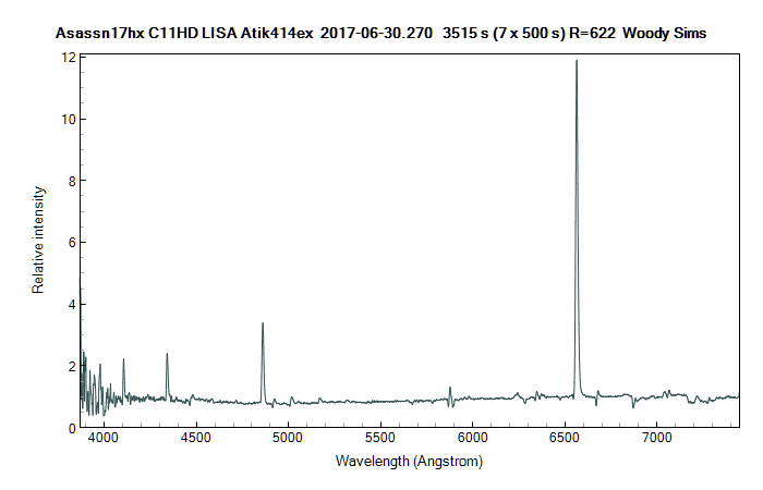 Only 50 sec exposure with a very strong turbulence. Anyway, the "super-noisy" profile shows a strong h-alpha emission line and weaker h-beta and h-gamma lines.