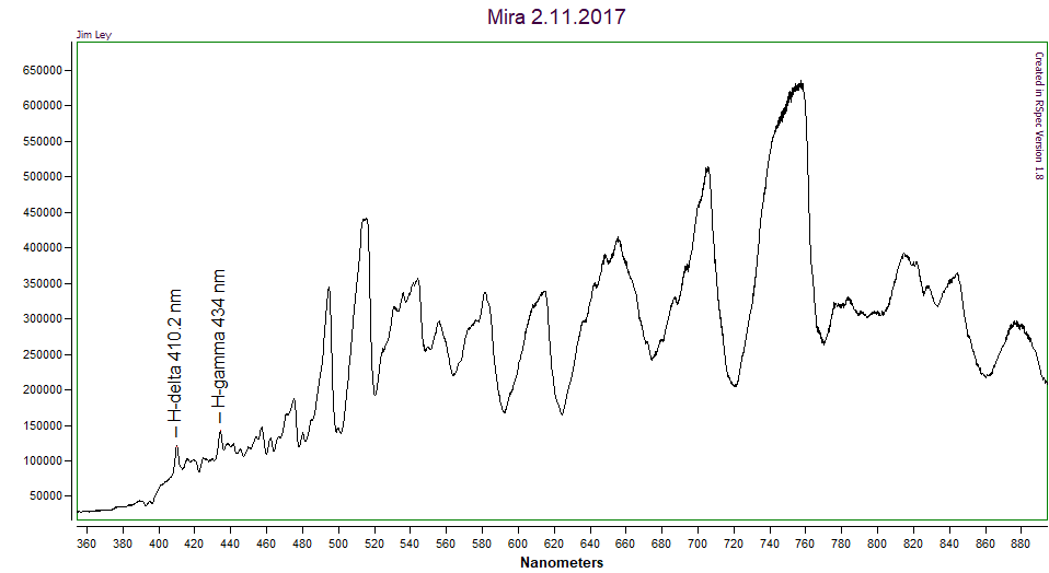 James L. was helpful to me as well with regards to Omi Ceti....here are some near UV H-lines seen with the LhiresIII spectrograph btw 3700 - 4100 A within the last week: