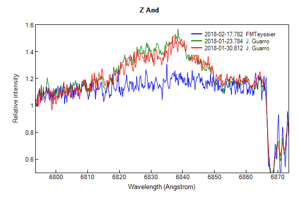 From echelle spectra obtained by Joan Guarro, Tim Lester and François Teyssier Significant broadening of the line and shift toward blue