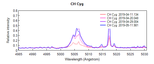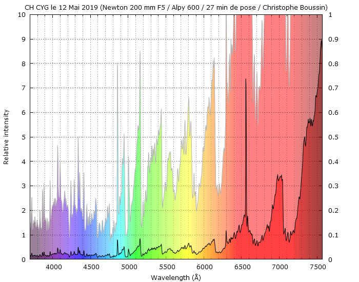 Just to highlight the effect of the resolution on the detection of spectral lines, here is a comparison of the Forrest Sims spectrum (LISA) of CH Cyg with mine (Alpy).