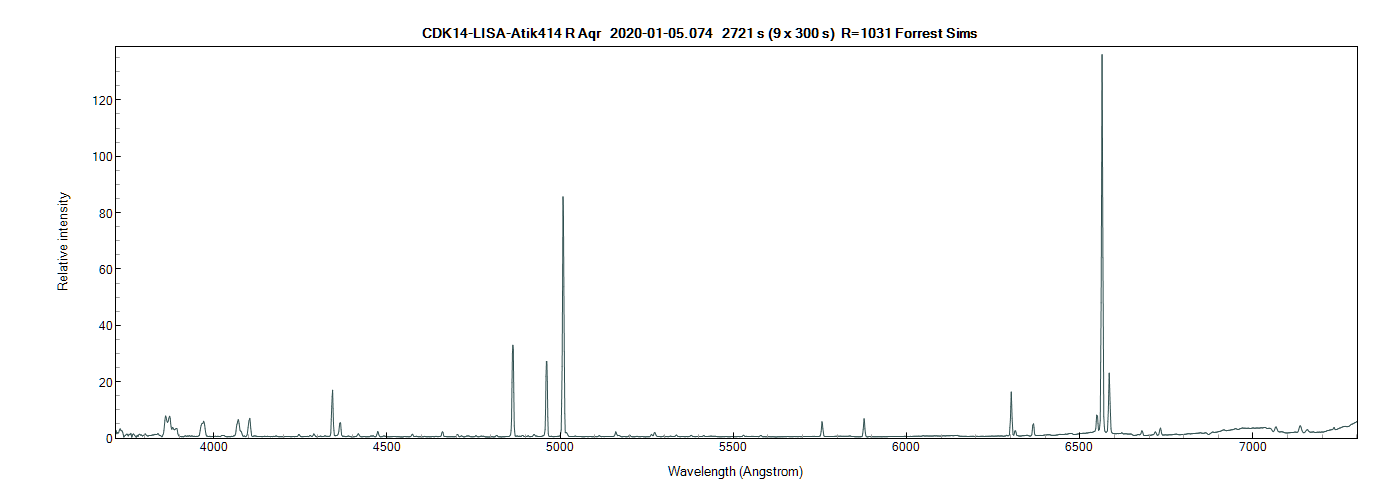 This is probably the last spectra I'll take of this star until late summer, but here is a visual (04Jan20) spectra of R Aqr: