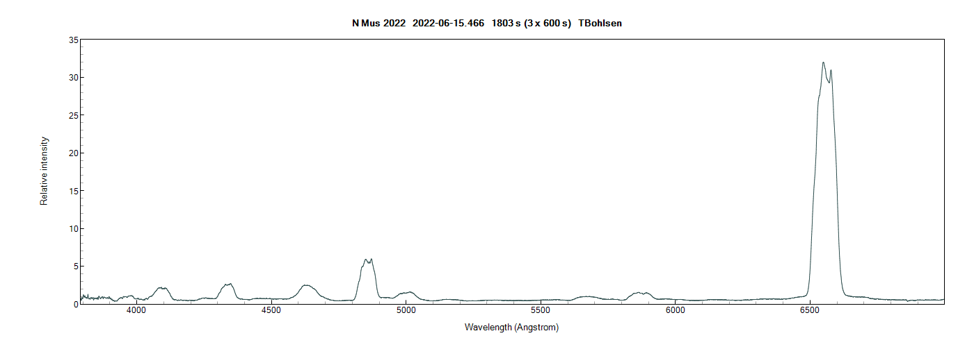 Another spectrum last night. As expected, further decline of the continuum making to the emission in features appear relatively stronger. I don't see the same dramatic changes of peaks to the h alpha profile as we have seen on the latest u sco outburst.
