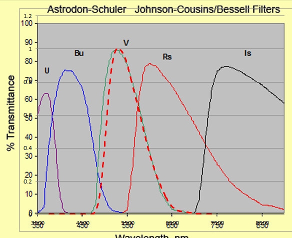 Les filtres Astrodon correspondent mieux au standart Johnson V que les filtres Schuller
