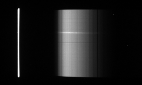 I am still playing with the ALPY200 but a rare clear night last night was spoilt by the full moon. Instead of going fainter, I decided as a challenge to try measuring 3C273 just 20 deg from the full moon. The test was successful with a good spectrum but when I looked at the resulting 2D image from ISIS I noticed 2 horizontal black lines on the image (see attached. A sum of 16 images dark subtracted, geometric corrected but not flat corrected or background subtracted) Does anyone know where they might have come from? They are not in the original images.