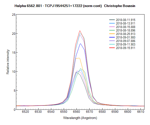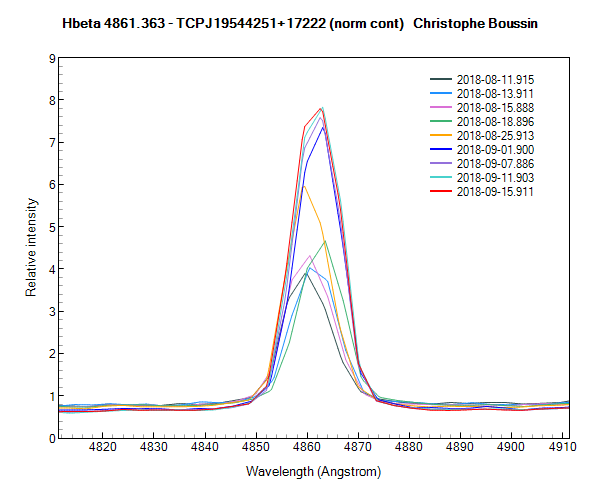 The profile of the HeII line at 4686A, also renormalized around its local continuum, shows that the relative intensity of this line seems to be maintained at the same level since September 1st :