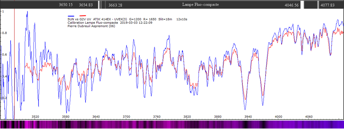 Ce matin, réglages sur table et ensuite spectre solaire proche UV et lampe de calibration Fluo-compacte.