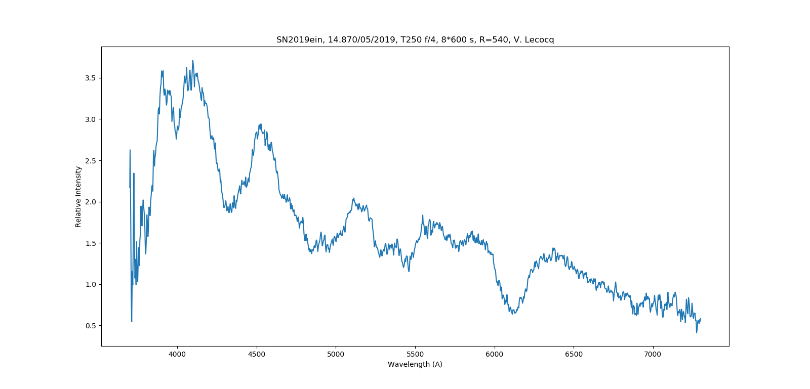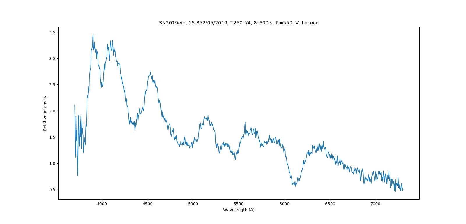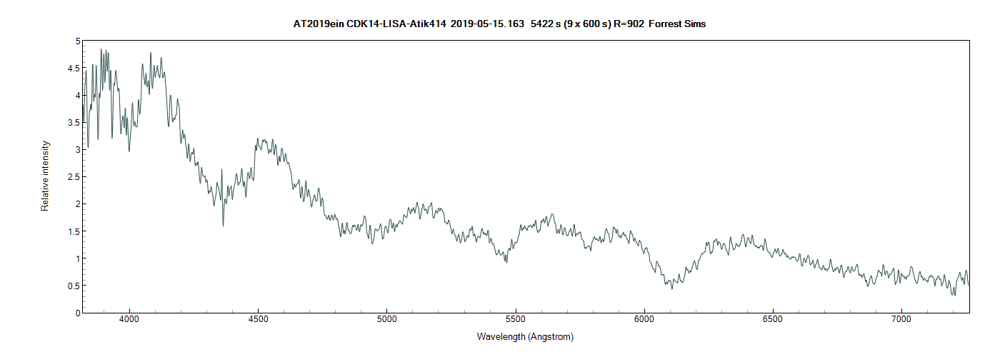 Here is my contribution on AT2019ein taking 9 600sec exposures using my Shelyak LISA with 23 micron slit. Amazingly, guiding was really good using the target star on the slit. I smoothed the data slightly using a filter value of 1.5.