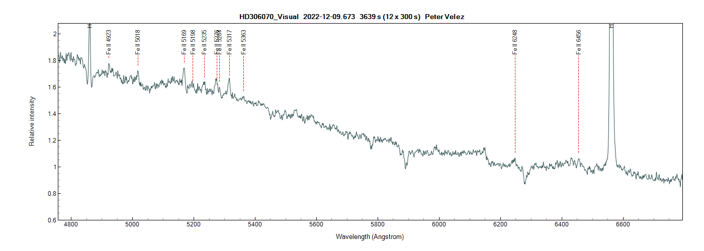 HD 306070 is slowly becoming more visible. herewith guider image and spectrum from last night (3x1200s).