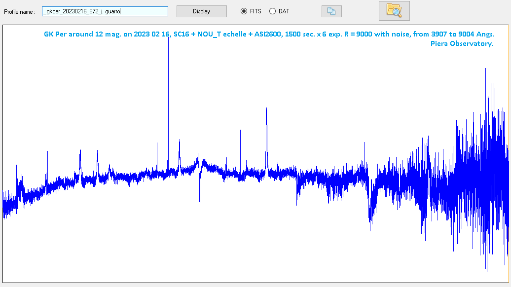 I obtained a new spectrum of GK Per with my Alpy 600 on 15 February at 20:28 UT (resolution of 520, JJ = 2459991.3942) with an acquisition time of 80 min (8 x 600s) :