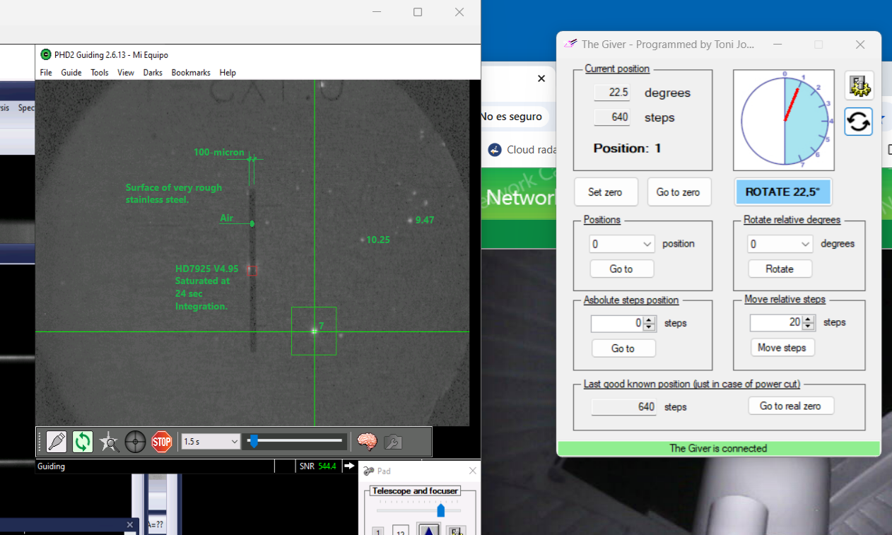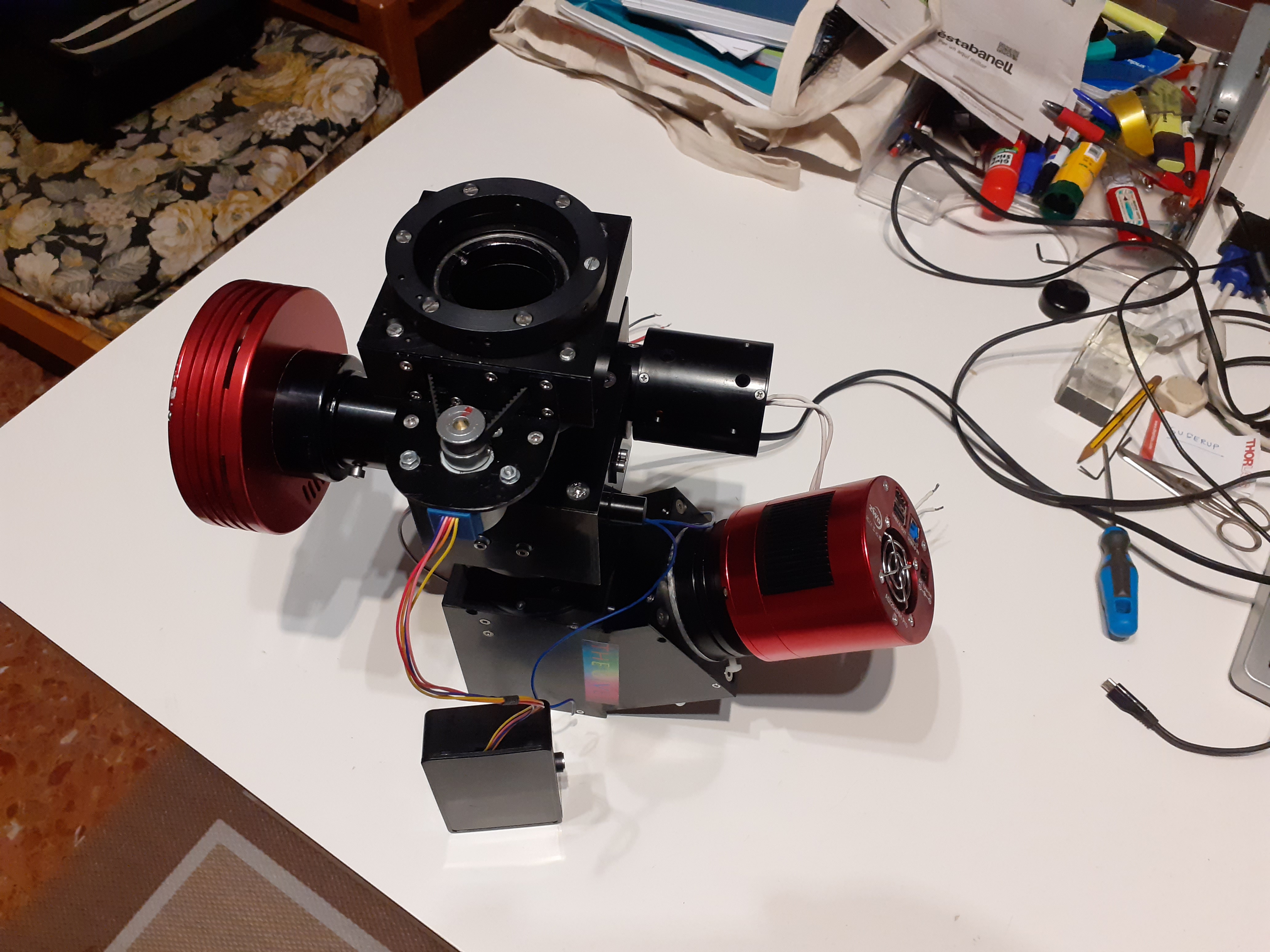 Meanwhile, I'm waiting for the last optical components, Toni has made an electronic set for moving the stepper half-wave retarder motor, all tested with Toni's software, which contains 22.5º pitch movements and position resets.