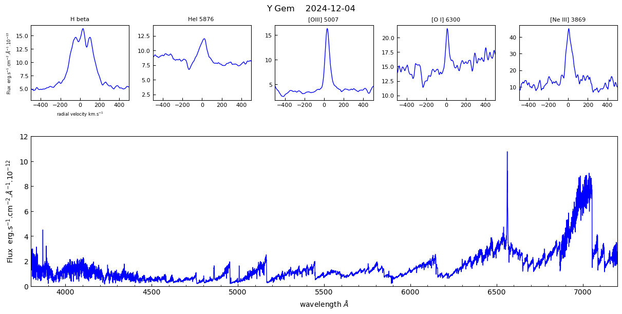 Notably: echelle spectra, near UV and high resolution H alpha (usefull for an estimation of the diameter of the accretion disk)
