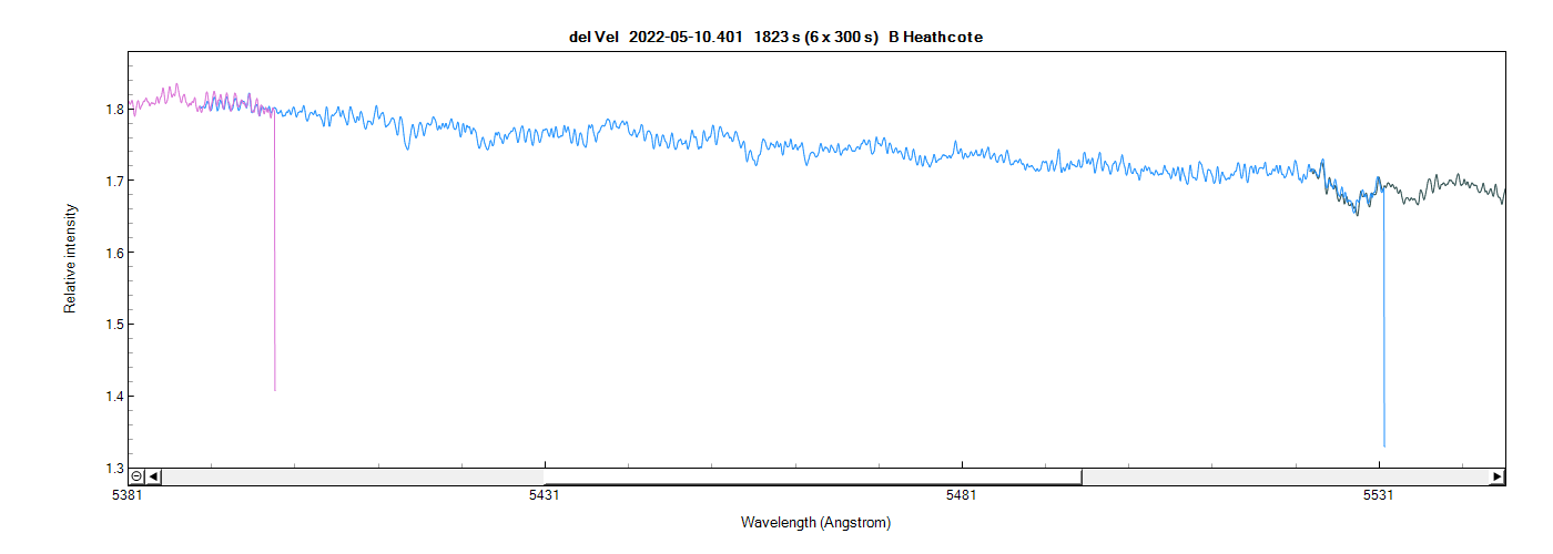 The next problem is the merged orders spectrum made by ISIS. As the first image below shows, there is a significant wavelength shift or error, clearly shown by the Balmer lines. I've tried various software option but without success. Could it be caused by the 'cramped' spectrum image, or is it a bug?