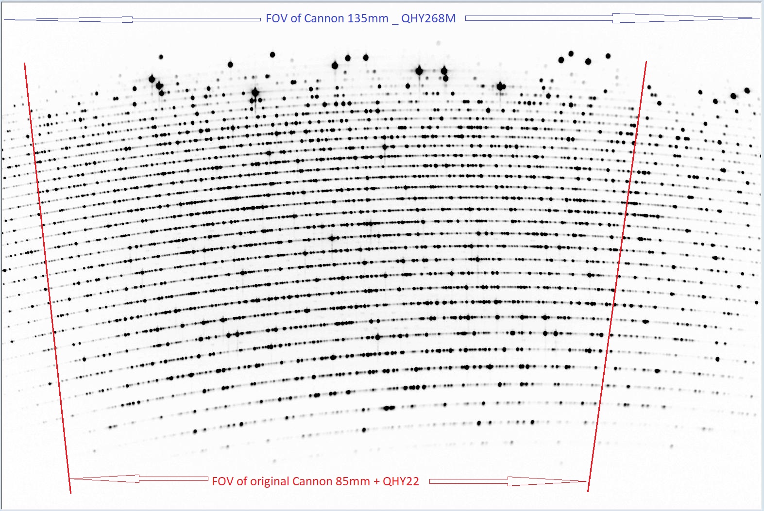 The only explanation I've found is that the FOV of the QHY268M camera (with IMX571, 28.43mm diag CMOS), similar to the ZWO ASI2600MM, may be cutting off the ends of the orders (see middle thorium image below). If this is the reason then I am to blame in trying to save money by not getting a camera with the larger IMX455 (36.24mm diag), as in the ZWO ASI2600MM or QHY600M and as used by Christian.