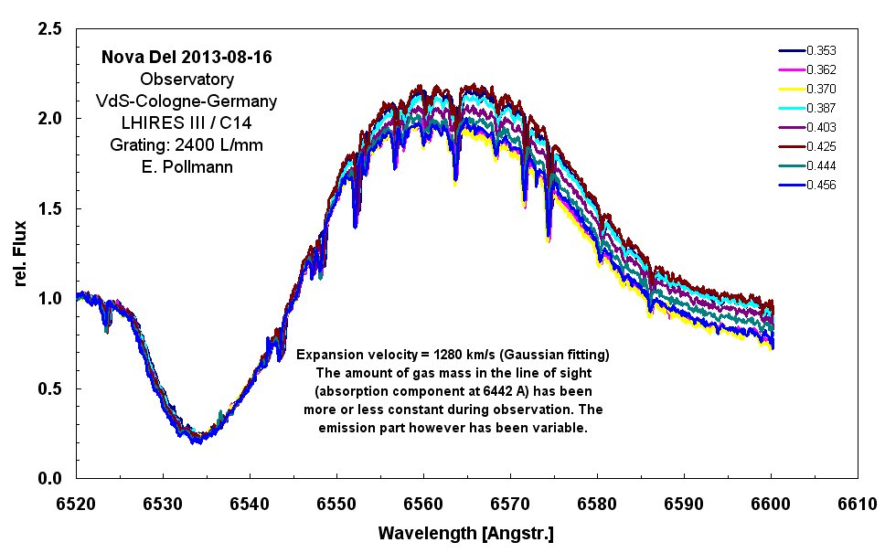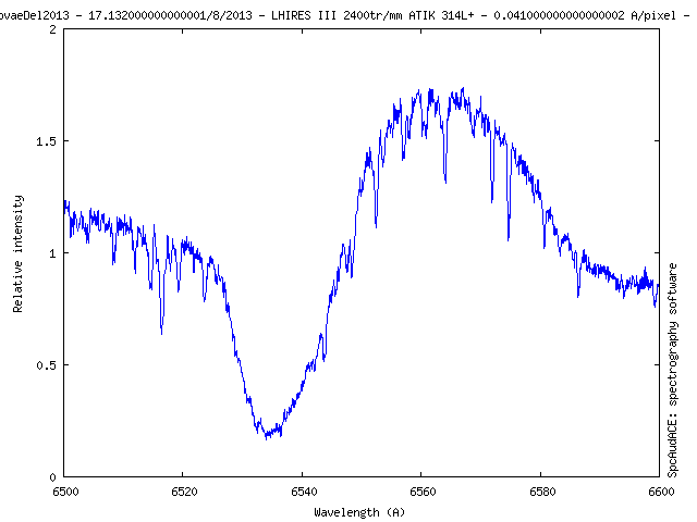 My latest spectra from Aug 17, 2013 with 25cm telescope - LISA - Atik 460ccd. The spectrum has changed significantly over the past several days.