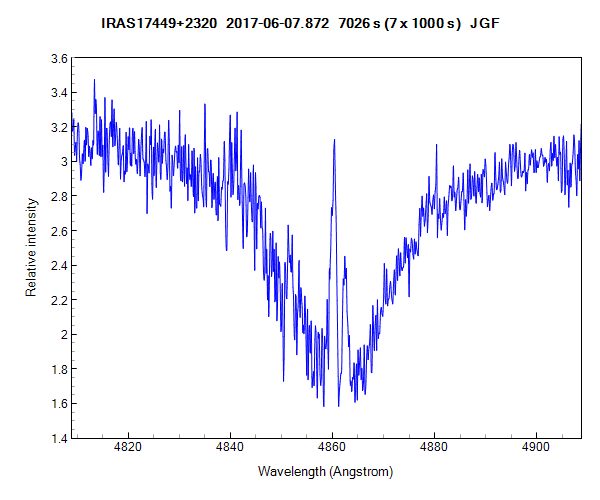 Spectrum of IRAS 17449+2320 taken last night with my eshel spectrograph and Astrosib RC 400 telescope