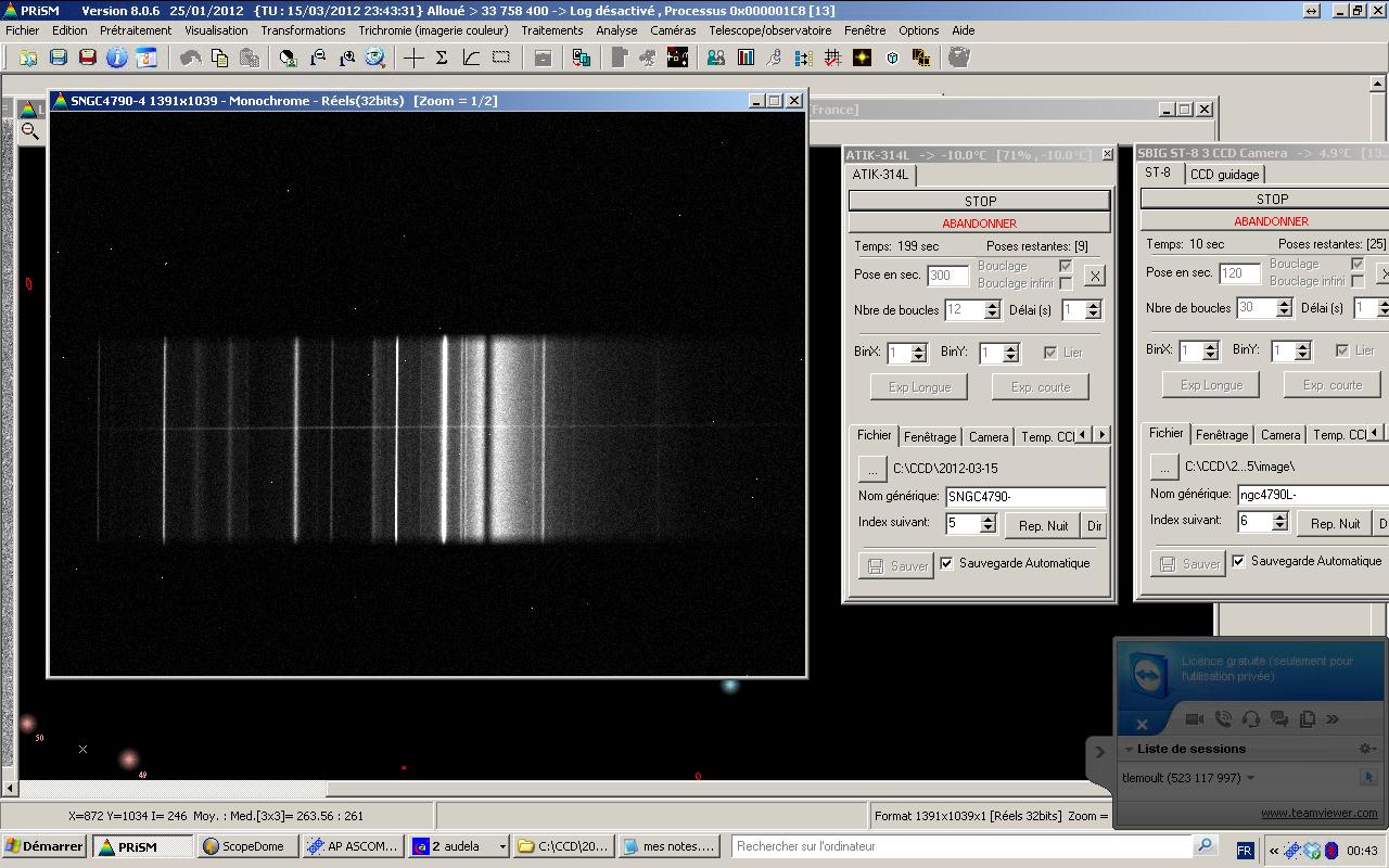 Configuration: C14 + reducteur Celestron + Lisa fente 35 micron + Atik314L+ et guidage Atik titan.