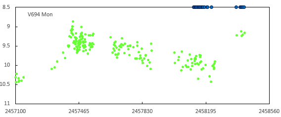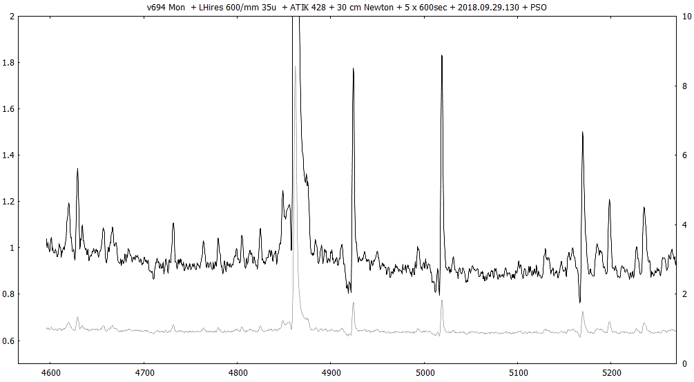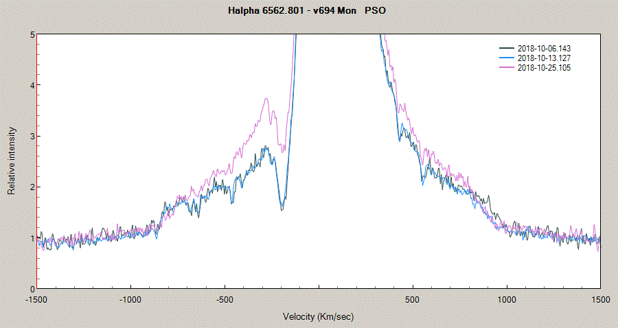 Opening the new season for v694 Mon: a fresh, lucky 1x10 minuter at the lowest level I can shoot v694 Mon from this morning - the P-Cyg profile has mostly vanished (a very rare state), uncovering a blue wing: