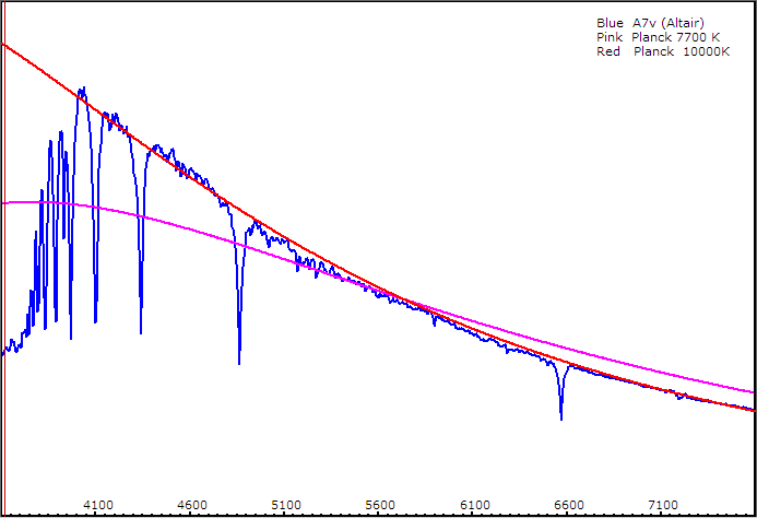 The method just does not work. For example the claim is that the a 7700K Planck curve is a good fit to Altair (A7v) is but if we look at the fit is is not good at all.