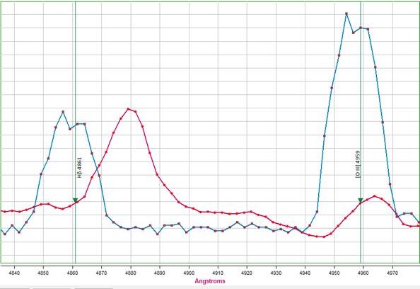 Coming back on your question : why I am sure it is not a real effect ? I should admit that, by lack of experience, I had a doubt at the beginning and this the reason why I had to ask "experts" for their advise.However I am now convince it is kind of artefact related to my specific setup. Image received from Michel Verlinden also with an Alpy600 shows clean lines around Hbeta but a also a strange pattern on Halpha (at this frequency I have no problem on my side). After multiple exchanges on that forum (thank for your own inputs) the most probable cause appears to be related to a slight defocus of the spectrograph (line calibration around Hbeta at 5.2 fwhm instead of 4.7 for your benchmark. I will continue to investigate using the present setup on bright/large NP as M57 and a bright Be with strong emission line at Hbeta (Sheliak could be an interesting target in the same area).